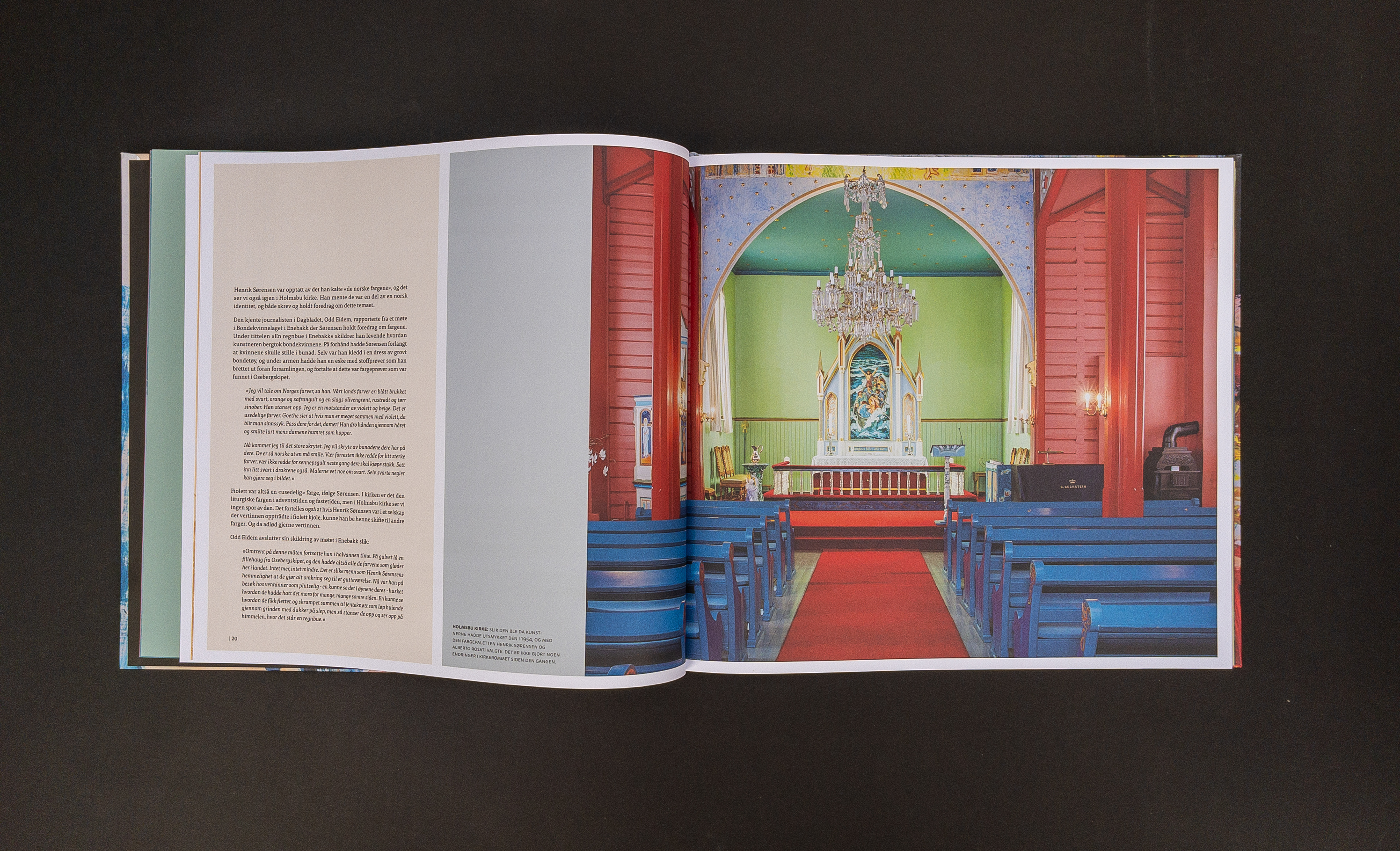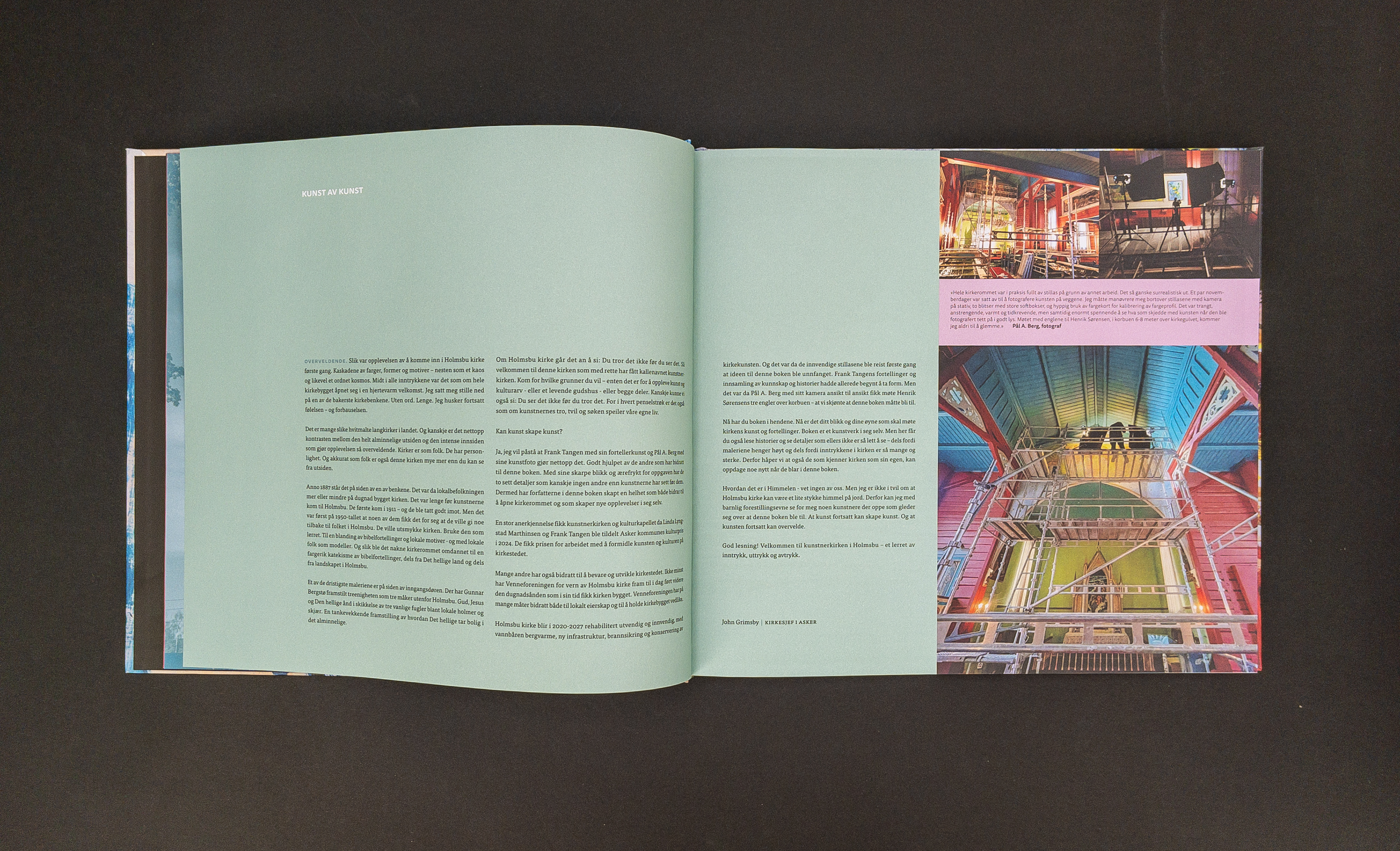 Blæst Design har stått for design, layout, typografi og bokutstyr i boken Kunstnerkirken i Holmsbu, utgitt av Asker kirkelige fellesråd. Vi har fulgt prosjektet fra idé til ferdig bok, og hatt gleden av også å bidra til dette praktverket. Sammen med Pål A. Bergs fotografier har vi ønsket å skape et varig uttrykk som speiler kirkens kunst og fortellinger – et bokverk som både bevarer og formidler et unikt kulturarvsted.