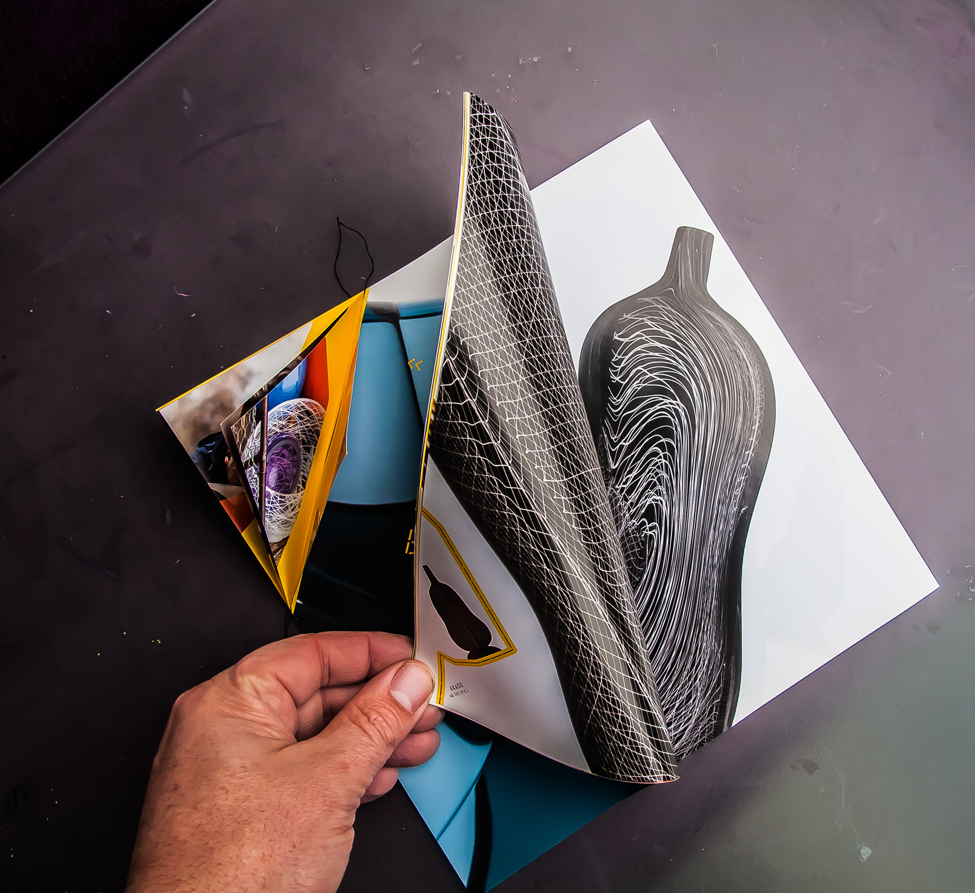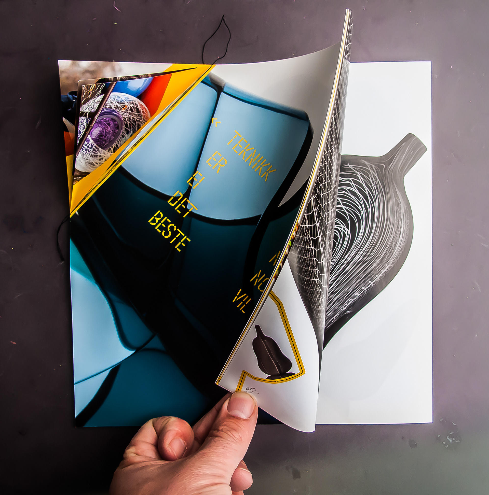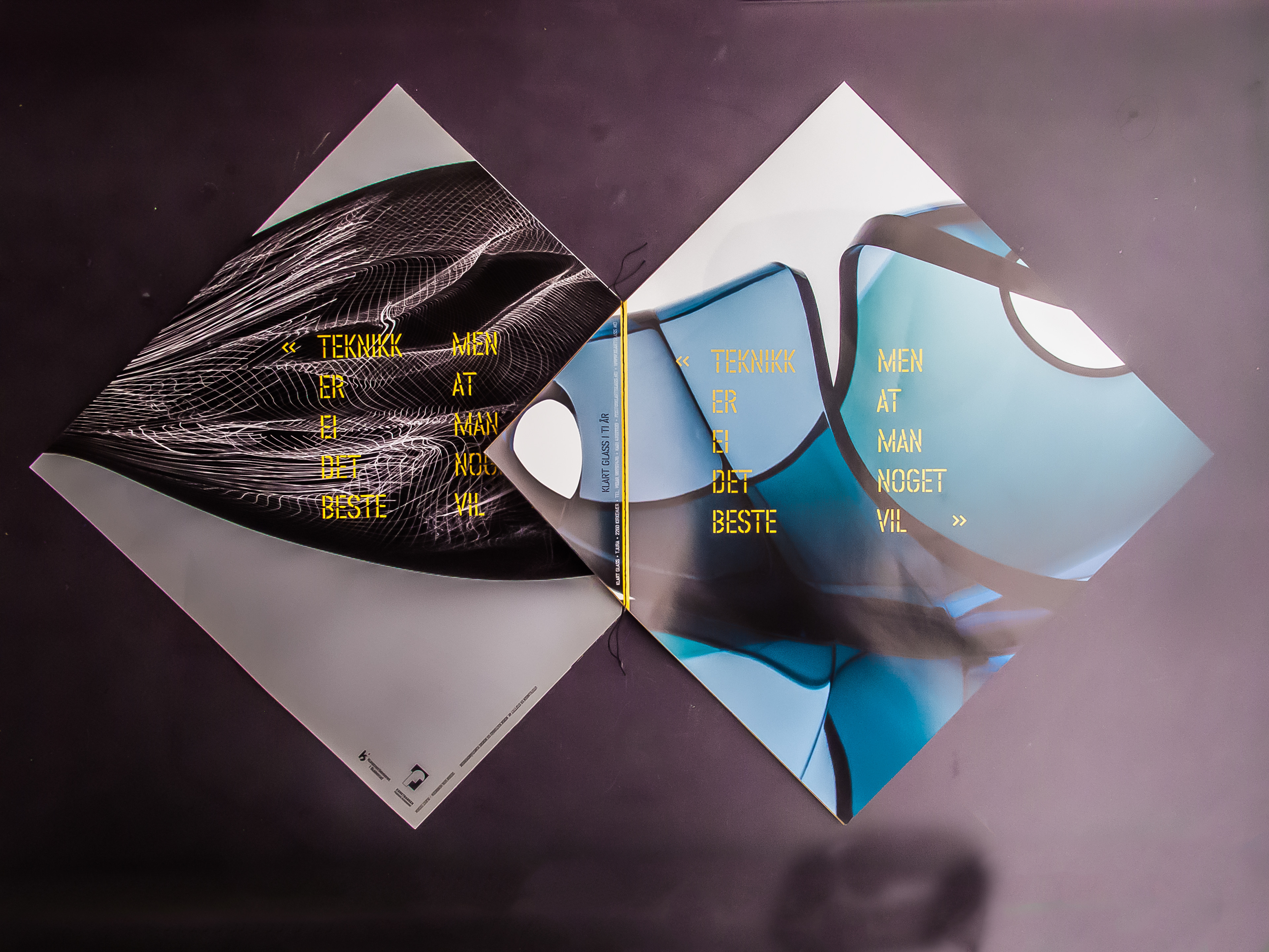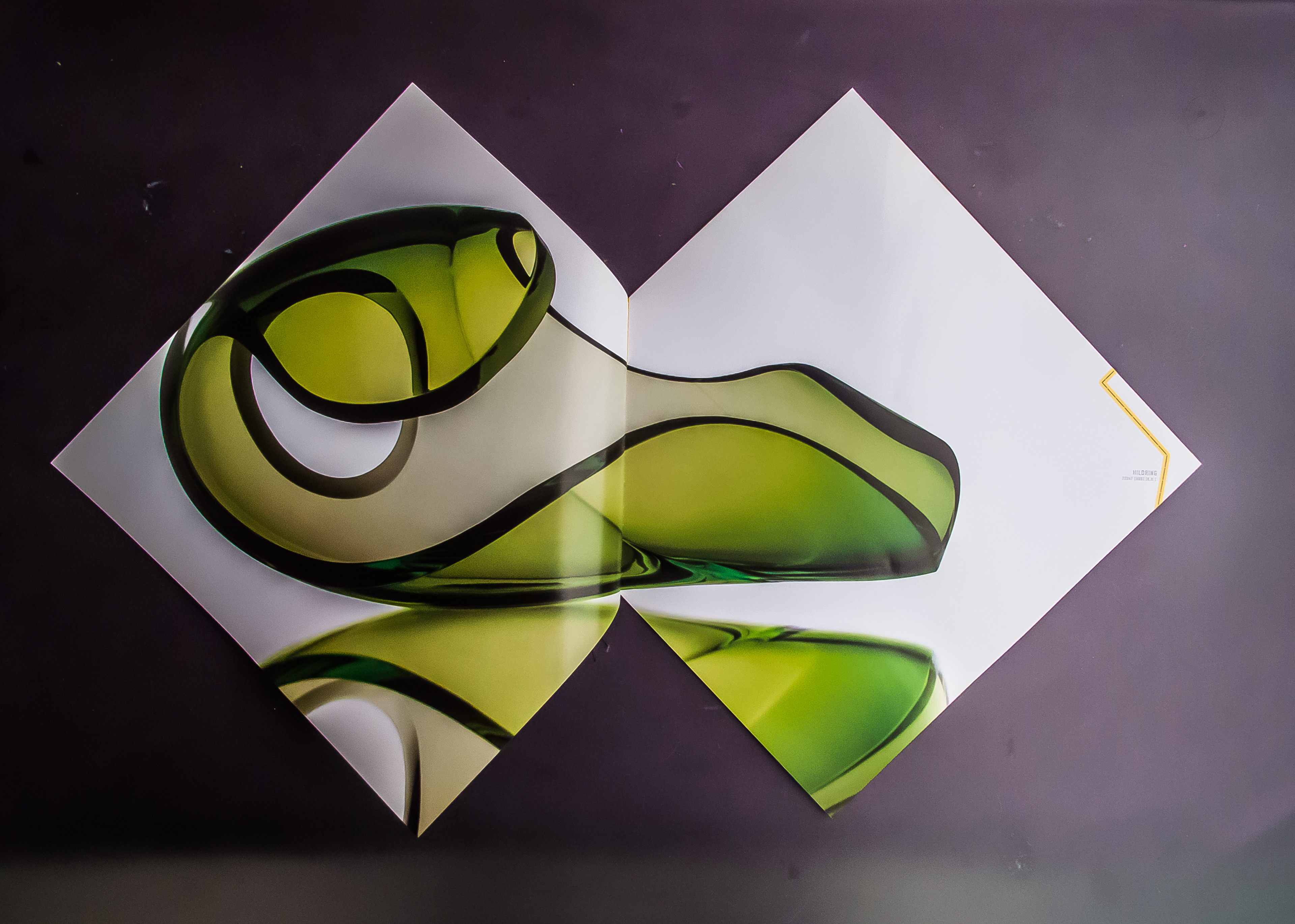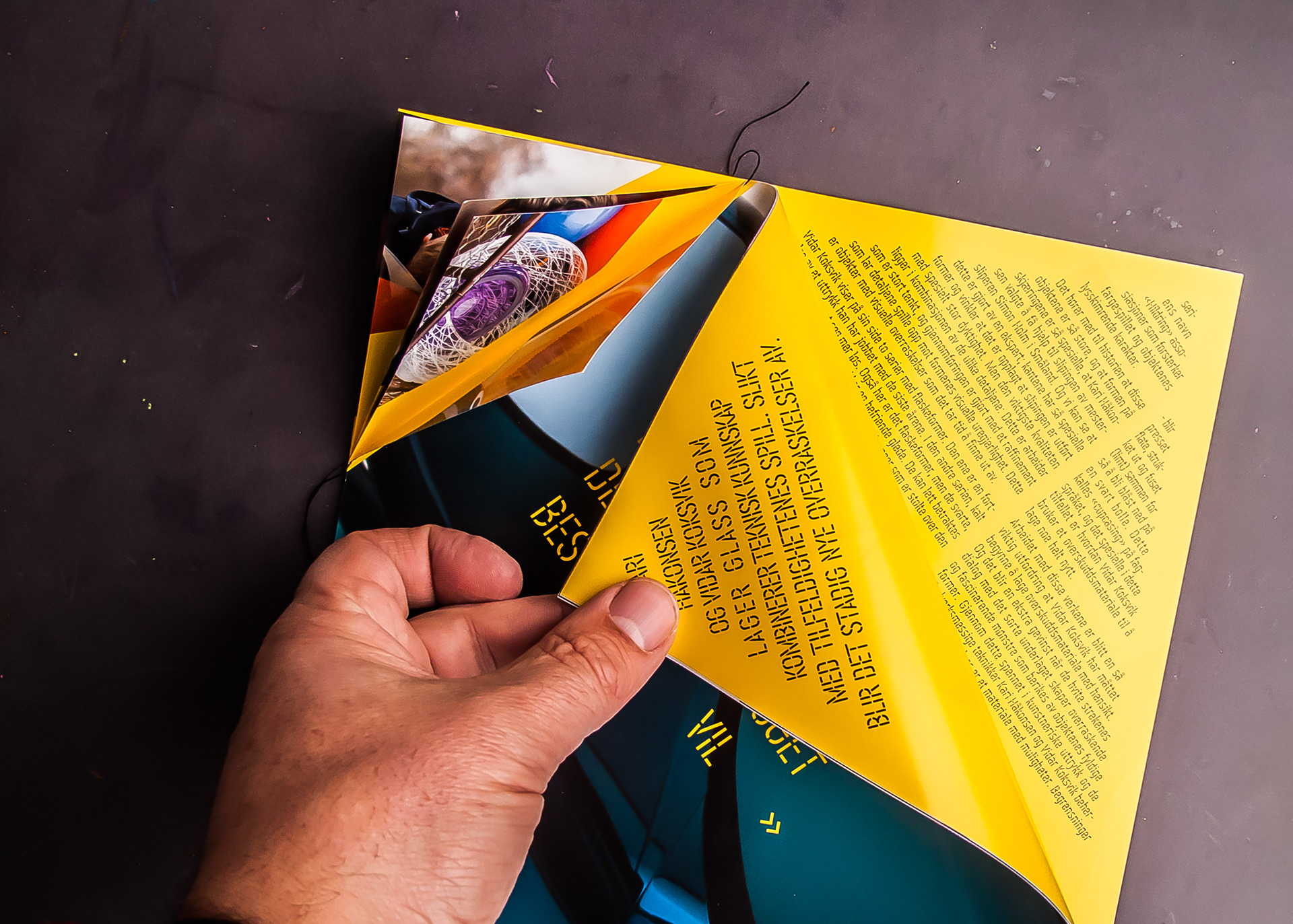 Utstillingskatalog: Kari Håkonsen / Vidar Koksvik / Glasskunstnere Katalogen kan leses fra to sider og har i tillegg en “mikro-folder” bygget inn i ryggen.